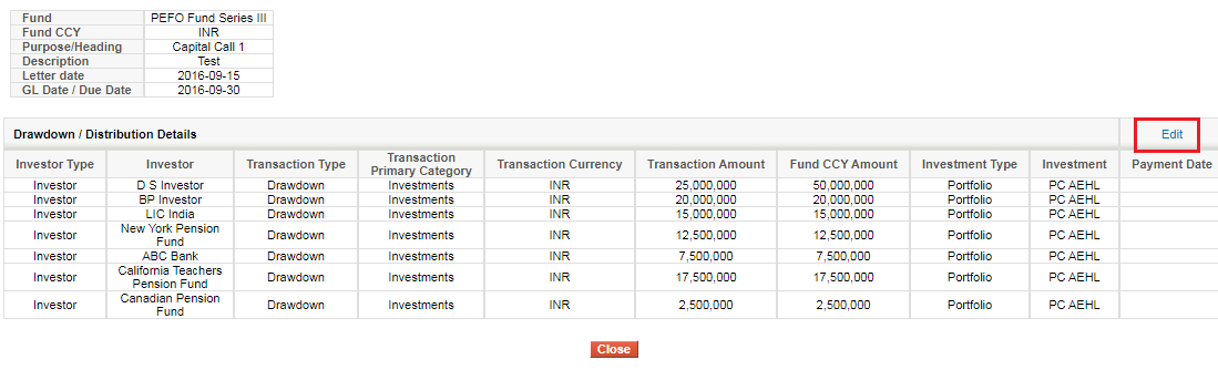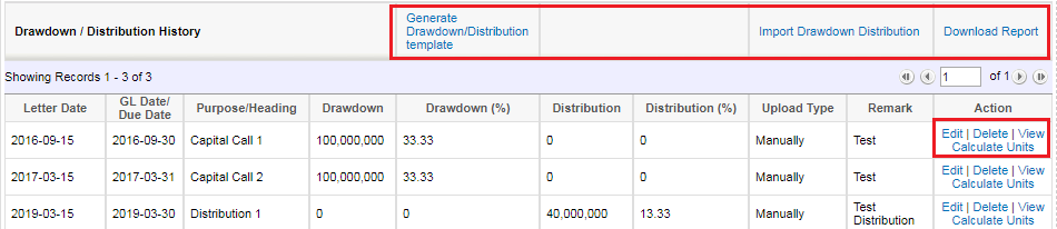 You can add Drawdown / Distribution History using Import (Manual or Excel import) and Edit or Delete using links in the Action column.
