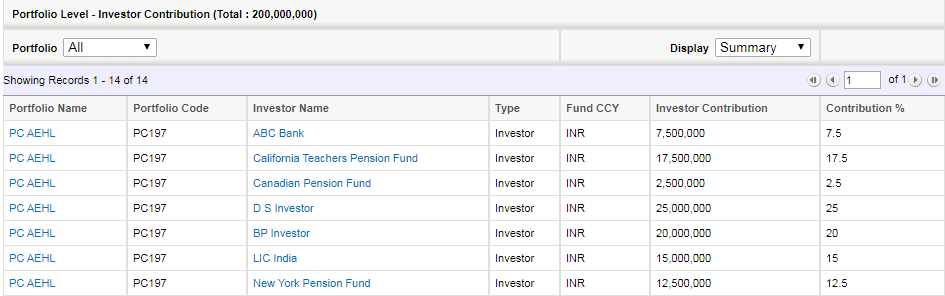 Portfolio Level - Investor Contribution shows