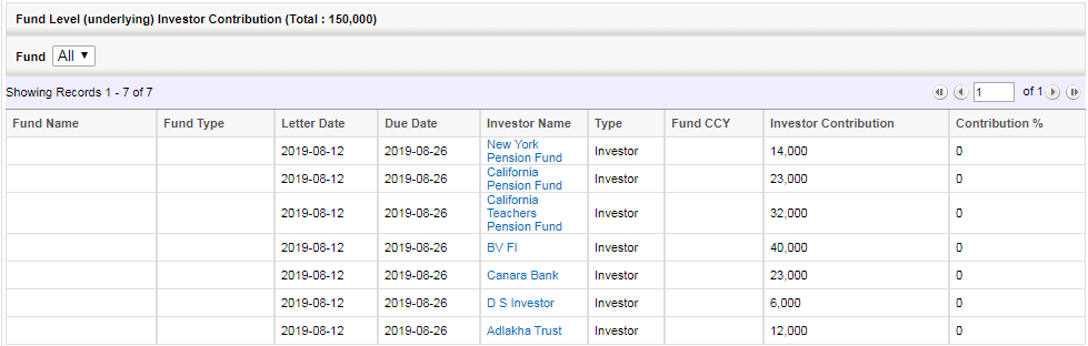 Fund Level (underlying) Investor Contribution shows