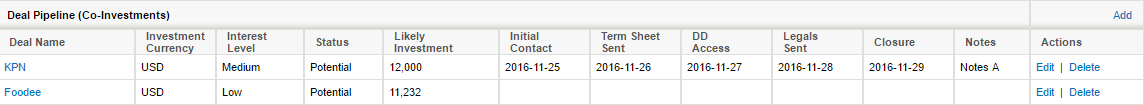 Detailed View - Co-investments