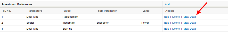This section is to capture potential investment preferences of the investor. The list view shows following details