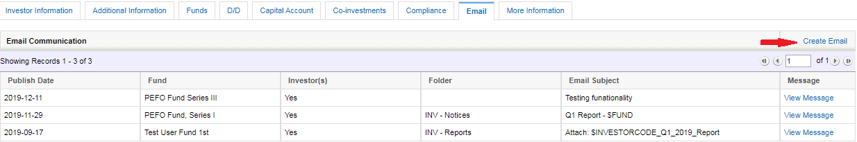 This tab contains Email Communication