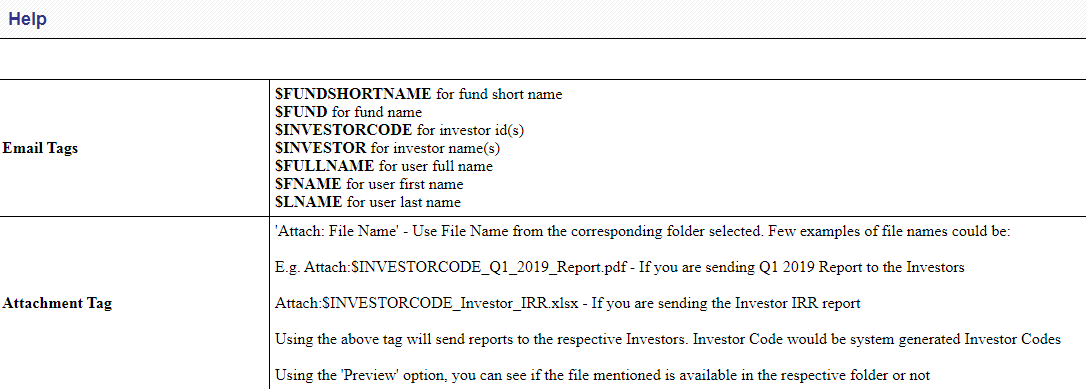 Help Button will open popup that contains some defined words that can be used to write mail.