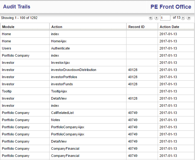PE Front Office allows you to Enable Audit Trail and View Audit Trail Report for a selected user.