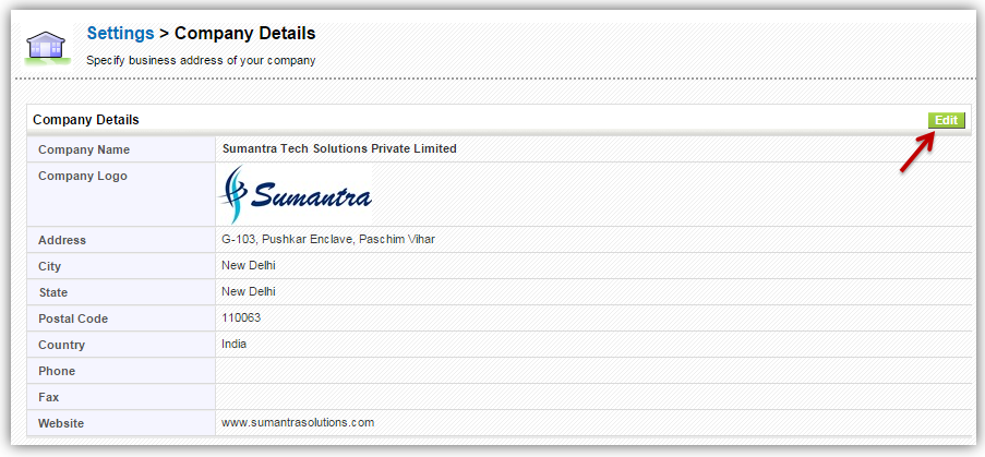- You will see Company Details window. You can provide following details