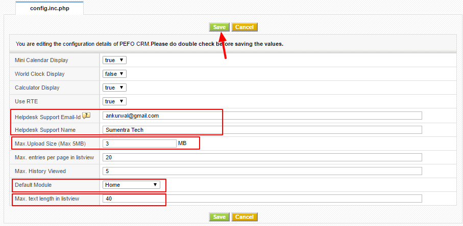 Configuration Editor gives you the flexibility to configure maximum file upload size, default module, the maximum text length that can be viewed in list view and maximum number of records that can be viewed in list view of any module.