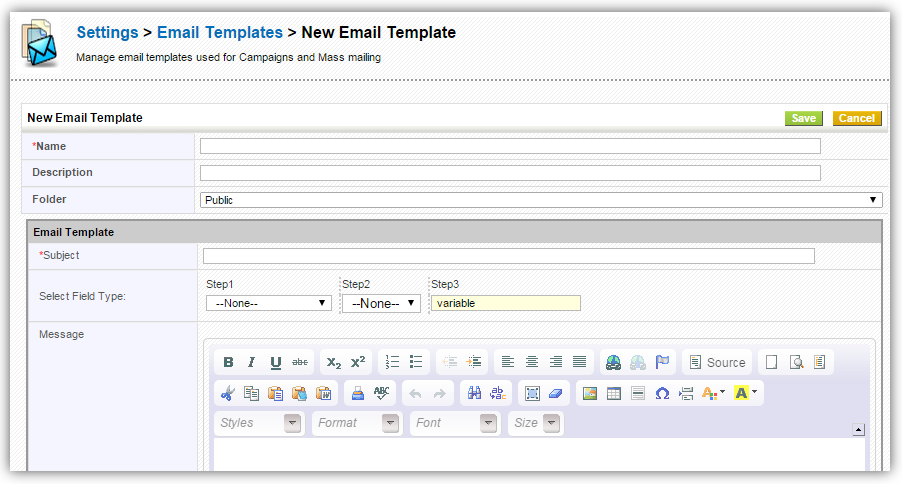 This feature enables you to create email templates and easily populate them while sending emails. You can design email templates according to your requirements. You can also include rich text, HTML content, Images, etc in your email templates. You can also design your own email templates for regular News letters, Monthly updates, Maintenance alerts etc.